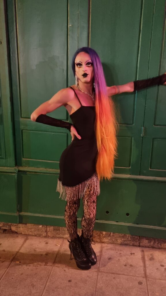 Drag Queen, drag King, drag Queer, il touche à tout. Son personnage, c’est un peu comme un sandwich : il joue avec les codes de genre et crée de multiples apparences aussi uniques qu’un vrai pan bagnat (thon, tomate, œuf, radis, huile d’olive et puis anchois si t’aime ça ma poule!). Chaque performance est unique et il aime ajouter sa bonne humeur avec son petit grain de folie !